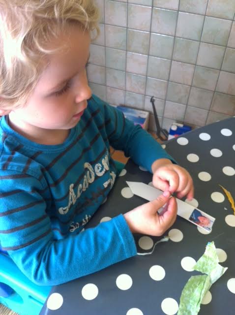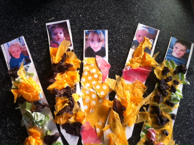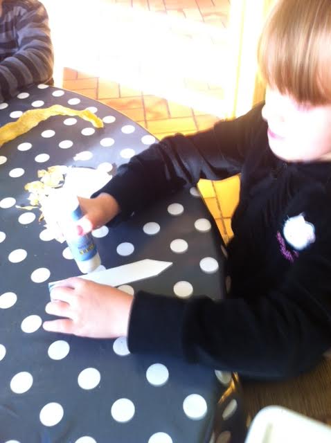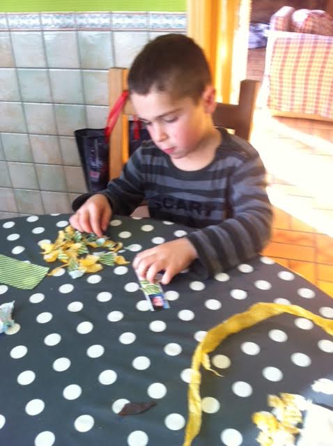 Romane, GAtien , Mya, Mael et Arsene maettent tout leur coeur à la confection d'un marque page, qu'ils offriront dimanche à leur papy !